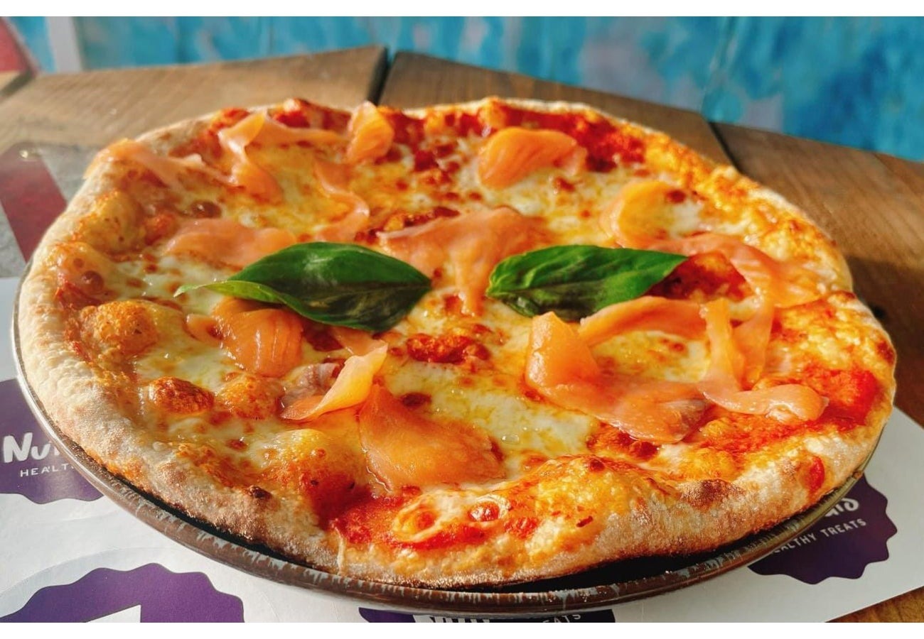 Begin a veggie voyage with tomato sauce, vegan cheese, onions, olives, cherry & tomatoes. Vegan